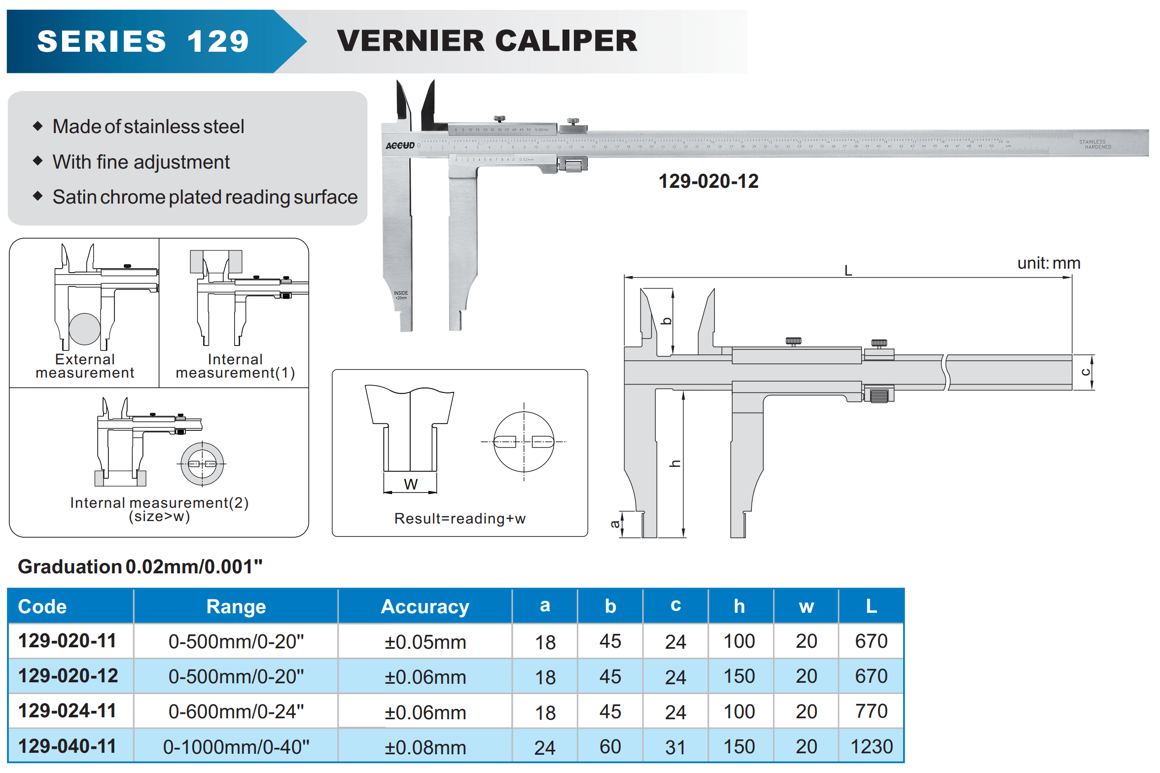 | Construction: | hardened stainless steel reading surface (scale, vernier) - stain chrome plated reading surface |