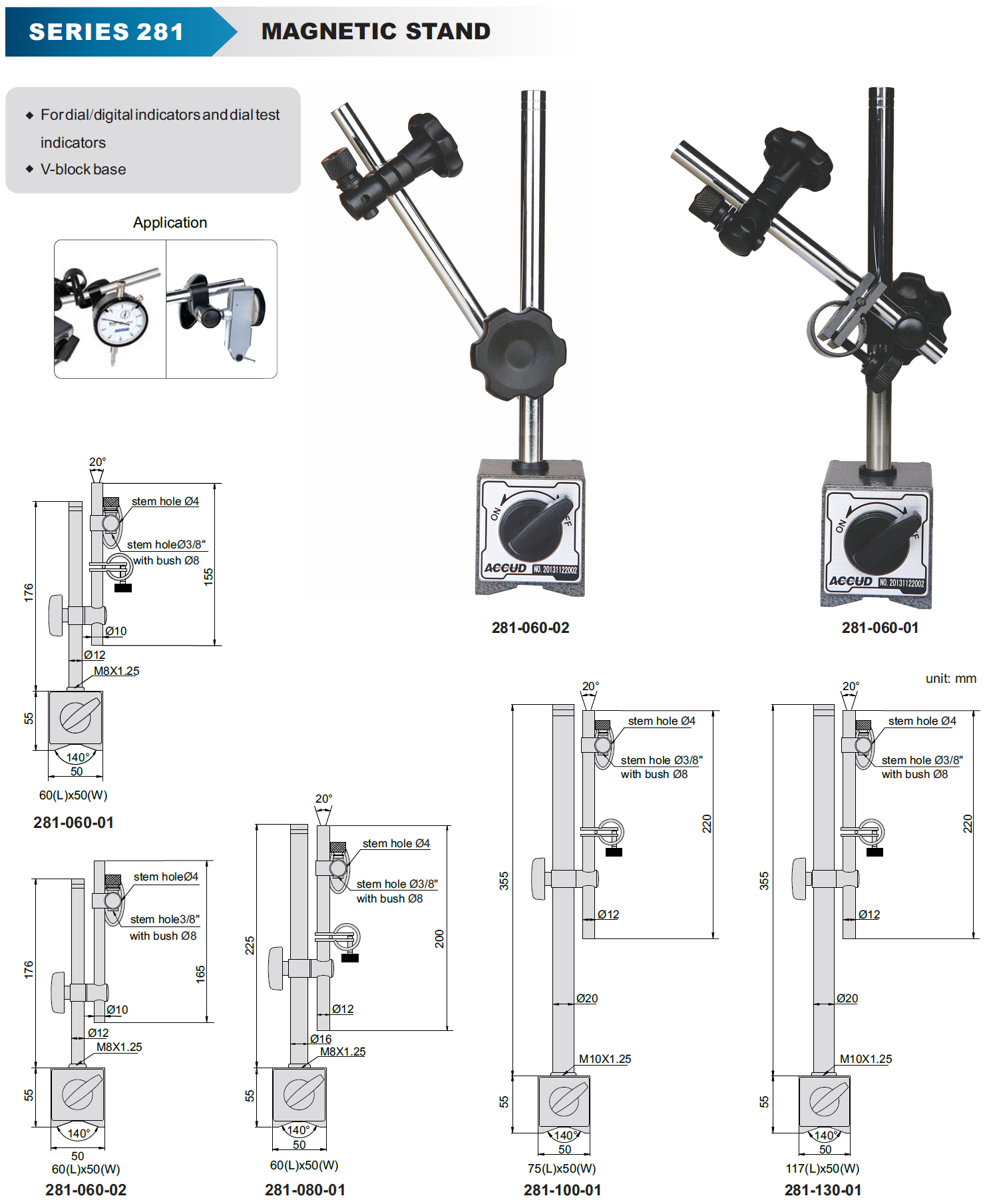 Our magnetic stands provide the ultimate support for your dial/digital indicators, offering stability, flexibility, and accuracy. Designed for precision measurement, these stands feature a powerful magnetic base that securely attaches to any metal surface. The adjustable arm allows for optimal positioning of your indicator, ensuring precise readings every time.