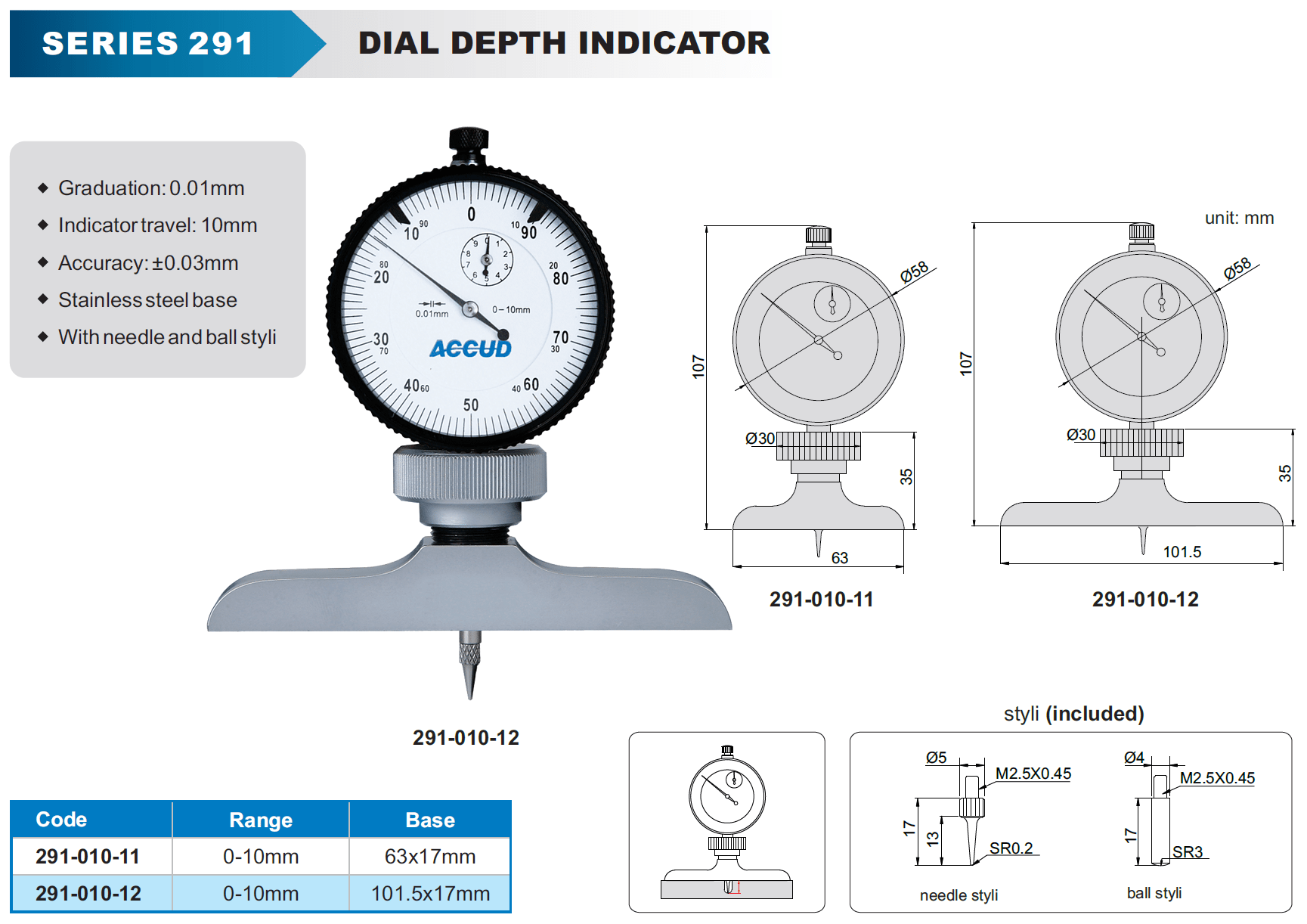 - Indicator travel: 10mm