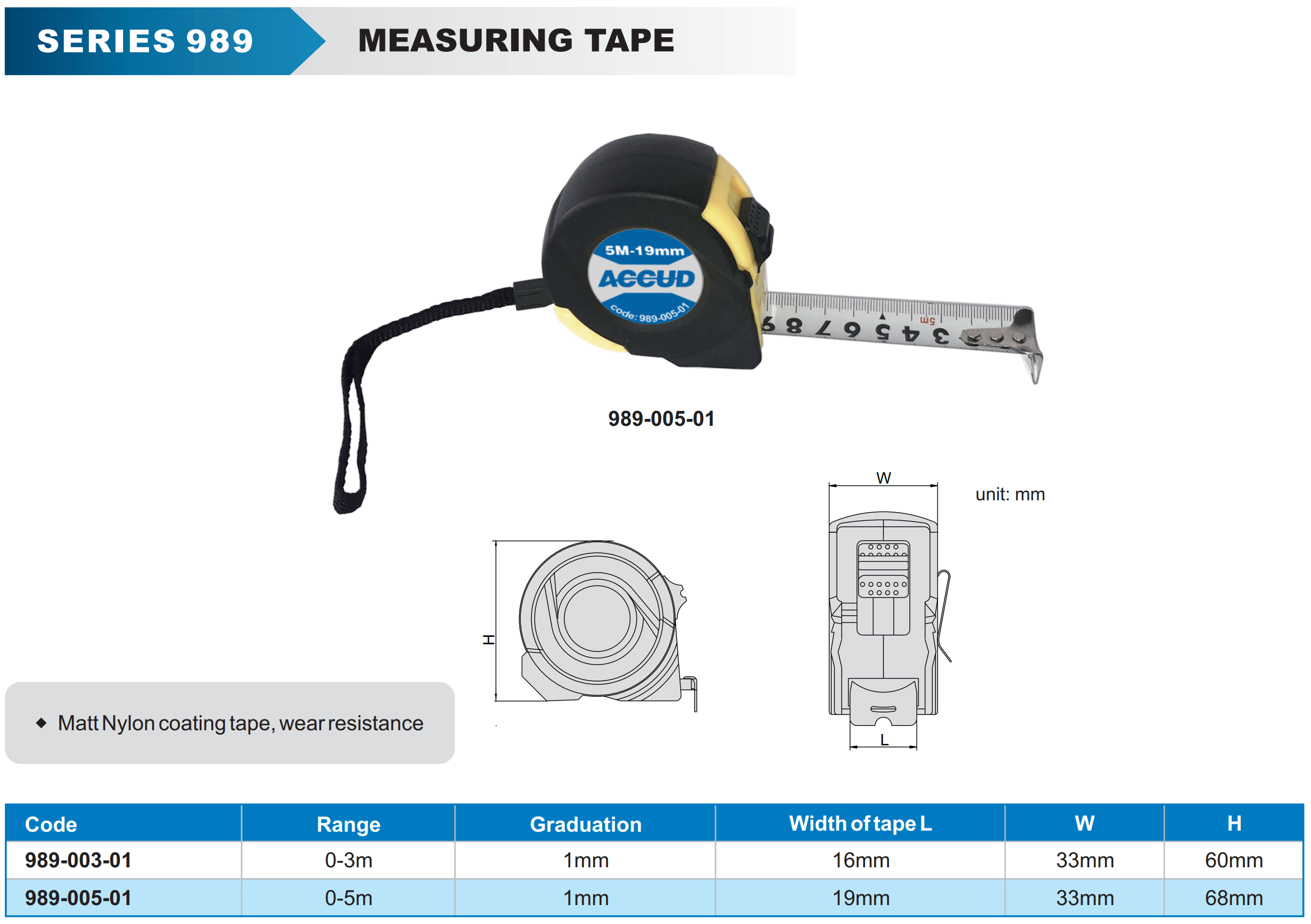 Measuring Tape 5m X 19mm 1mm Grad. Nylon Coating