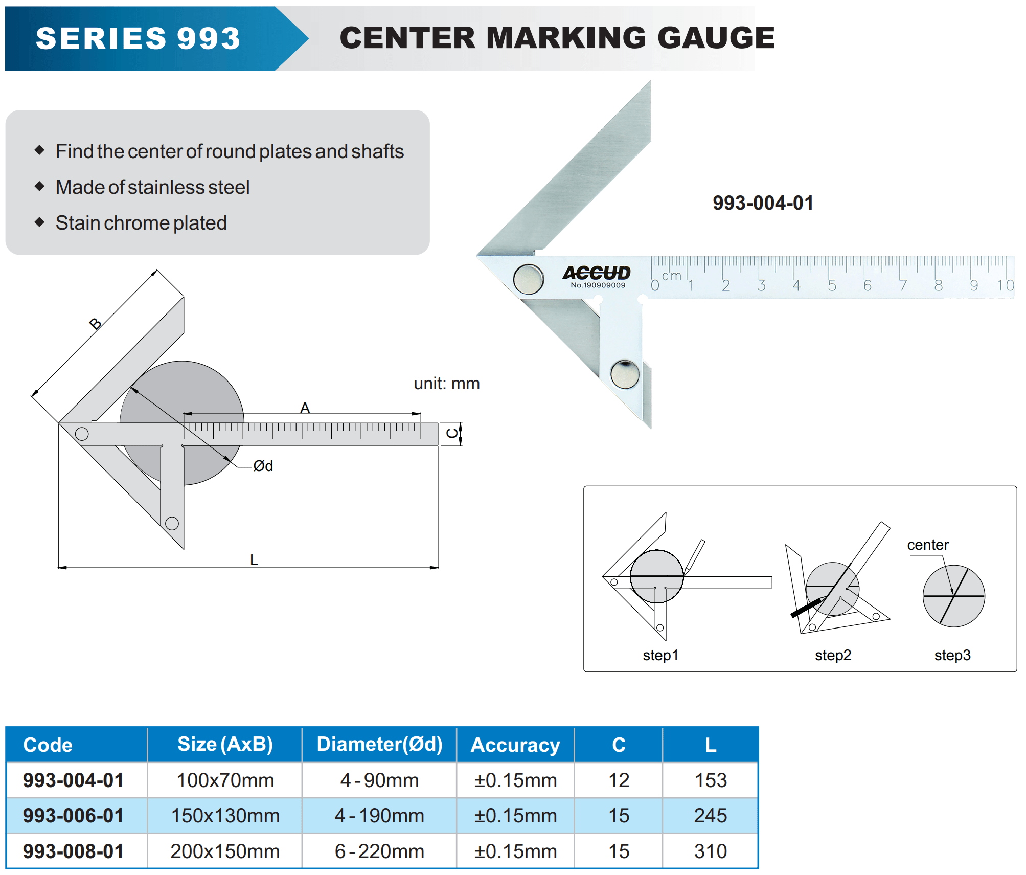 Center Marking Gauge 150x130mm 0.15mm Acc. S/steel