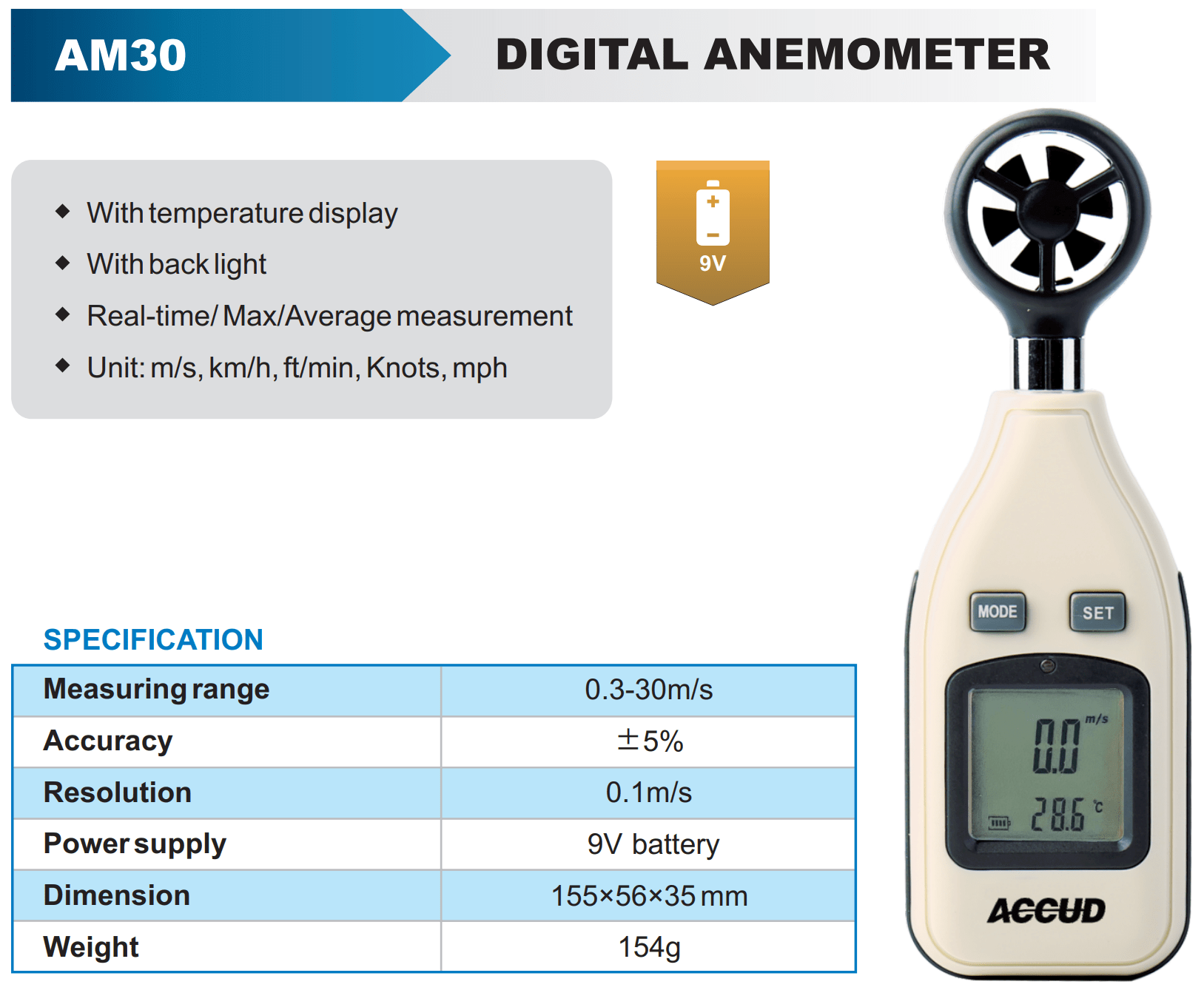 - Portability: Digital anemometers are generally compact, lightweight, and battery-operated, making them portable and easy to carry for outdoor or on-site measurements.