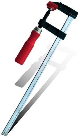 The F-type clamp is also referred to as a speed clamp. It is similar to a G-clamp in use, but has a wider throat (opening capacity) and is faster to clamp and to readjust.