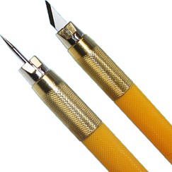 This designers Art cutter with a spatula edge package includes 30 blades and a needle.