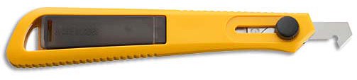 Retractable plastic scoring knives, such as this Olfa PC-L and PC-S, are a good compromise between rigidity and convenience. Replacement blades are widely available.