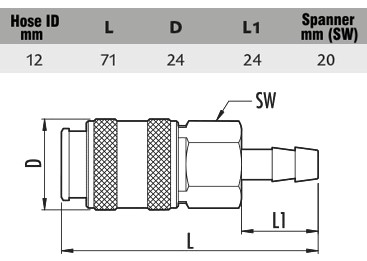 Quick Coupler 12 mm hose tail