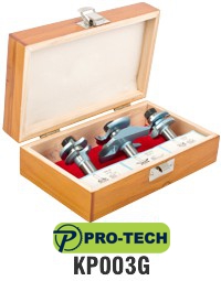 The set is designed to be used in a router table to create a cabinet door.