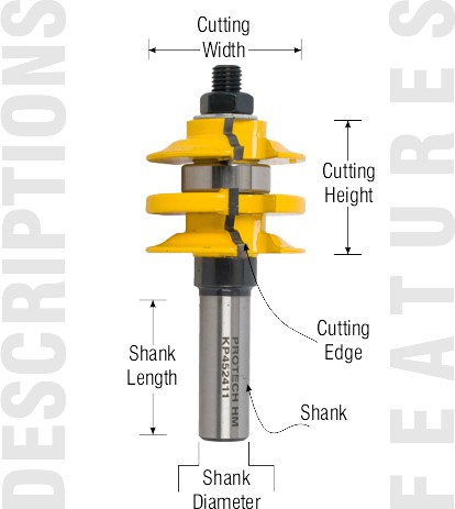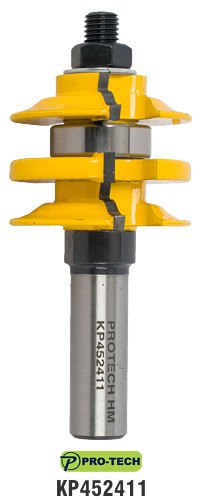 The cutter contains both the rail and stile cutters to create the frame of a cabinet door with an ogee profile.