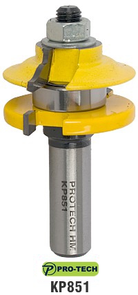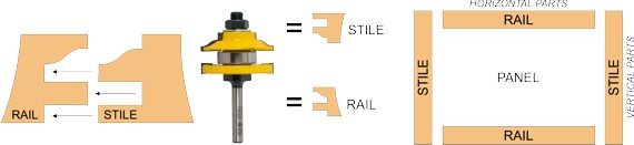 The cutter set contains both the rail and stile cutters to create the frame of a cabinet door with an ogee profile.