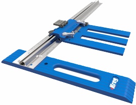 The Rip-Cut is very easy to use. Simply mount your saw to the Universal Sled — it accepts most left-blade or right-blade saws — and then slide the sled onto the aluminum rail. After a simple one-time calibration, you can lock in your cut width (up to 24') using the measuring scale and precision cursor. Then, just hold the edge guide against the edge of your sheet as you guide the saw. You’ll get straight, accurate, repeatable cuts easily every time.