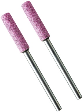 The grinding stone is cylindrical shaped to allow it to easily sharpen the gullet, side plate and cutting corner on a chainsaw blade.