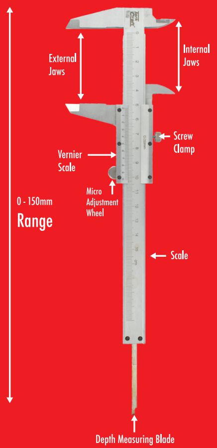 The Tork Craft Vernier Calipers are used to measure internal and external measurements