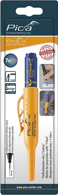 - Extended tip made of stainless steel – self-adjusting and patented: up to 3 times more marking capacity by using full 7 mm of the fiber nib’s length of abrasion, instead of 2 mm