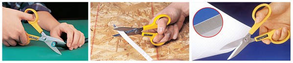 The high quality 55mm stainless steel blades are perfect for precision cutting. The material being cut is held in place by one blade which is slightly serrated providing maximum control. This scissors are so sharp, they can cut through electrical wiring, plastic, aircraft composites, Kevlar® and more.