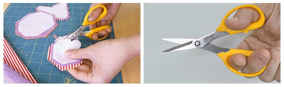 Symmetrical handles also fit both left- and right-handed users. Straight-edge blades easily slide through the fabric and are sharpened to the tip for smaller or appliqué cuts. OLFA's unique special honing process helps the blades grab the fabric and cut cleanly, with no material folding over the blades - even when cutting left-handed!