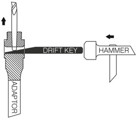 - The Drift key is a wedge used to remove the pilot drill from the Dry Cut Diamond Core Drill adaptor with a hammer. See illustration below.