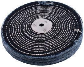 An unstitched buff is used with polishing (finishing) compound on metals. Each fold/leaf of material is approximately 1mm thick.