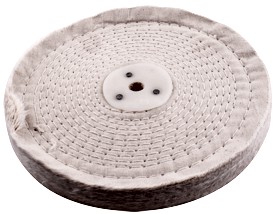 An unstitched buff is used with polishing (finishing) compound on metals. Each fold/leaf of material is approximately 1mm thick.