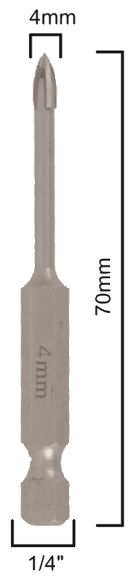 Glass & Tile Drill 4mm 4 Flute With Hex Shank