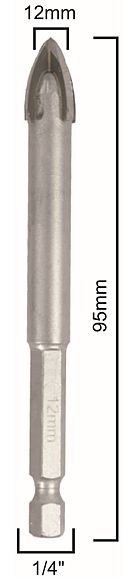 Glass & Tile Drill 12mm 4 Flute With Hex Shank