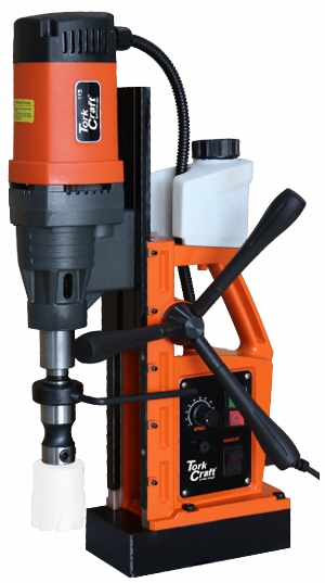 The magnetic base drill is fitted on a strong dual-coil magnet with a maximum core drill capacity of 60mm. The speed is adjustable electronically between 100-440 rpm.